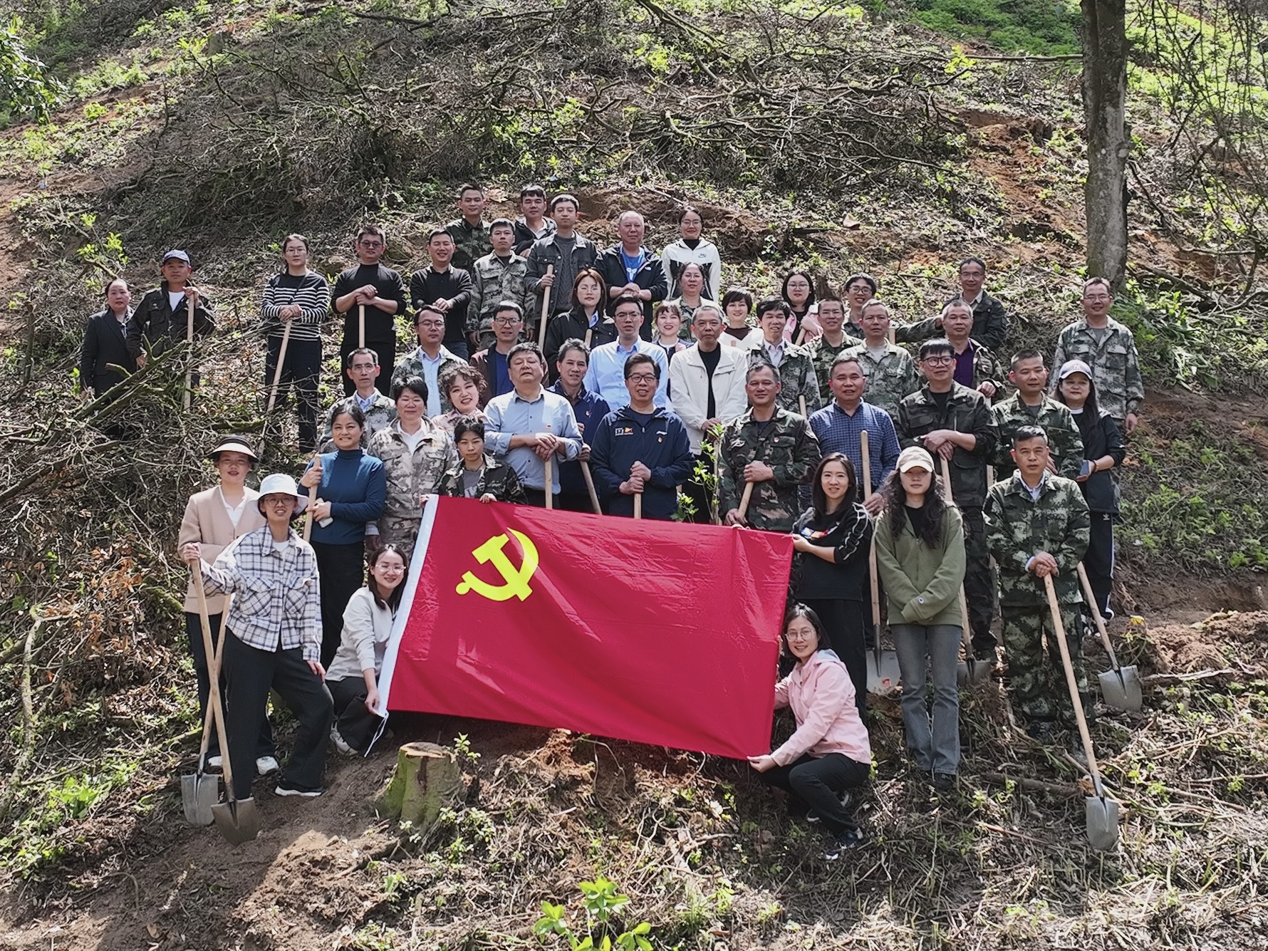 2026年3月12日上午,本所党支部书记常晶晶、黄玲昊律师、邱海帆律师、实习律师苏紫莹一行四人,前往六万林场河嵩分场茶山站9林班植树点,参加由林场组织的“党建联建聚合力•同心共筑生态林”主题活动。本次活动共有来自自治区速丰站、广西北部湾银行、玉林市国安局、市公积金中心、中国建设银行玉林分行、六万派出所等单位的80余名干部职工参加。