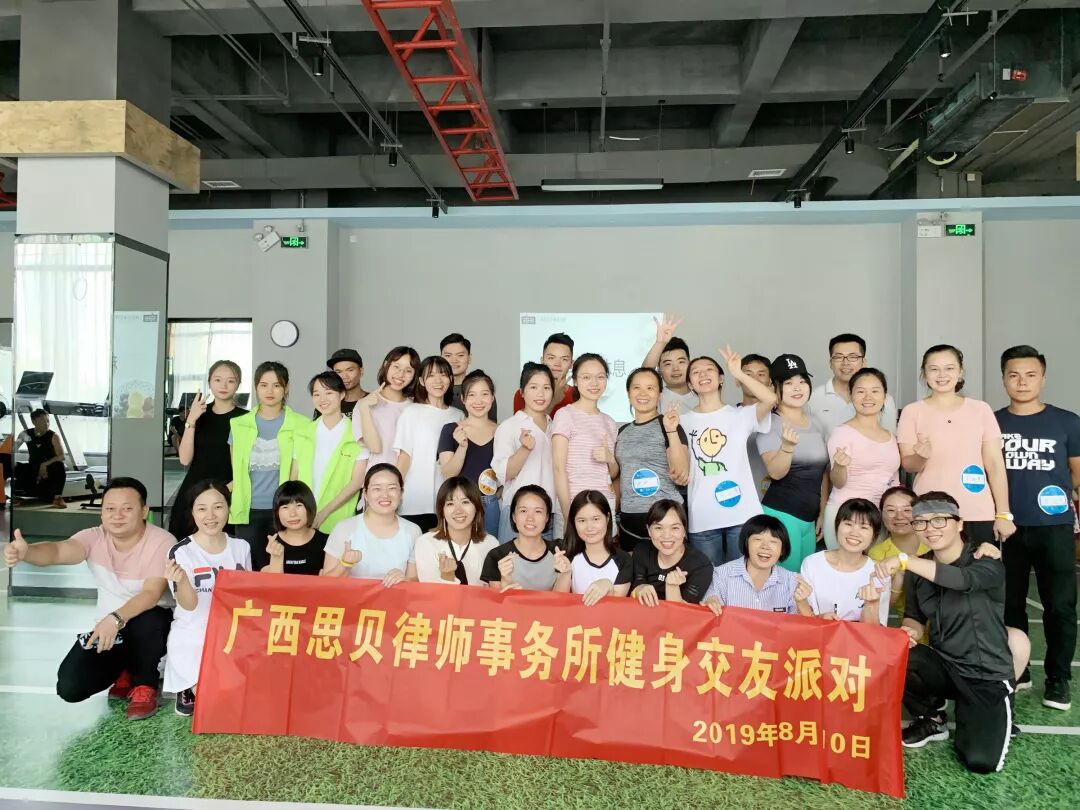 2019年8月10日下午3点至6点,由广西思贝律师事务所主办,超美健身馆五象新区旗舰店承办的“广西思贝律师事务所健身交友派对”圆满举行。本次活动以减压、交友、联谊、健身为主题,吸引了来自社会各界约40人前往参加。