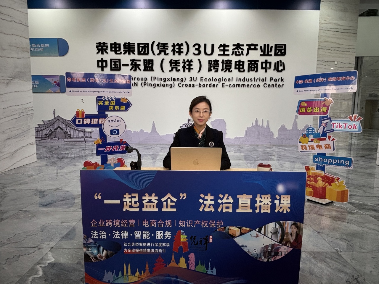 2025年12月30日上午,由凭祥市司法局、市人民检察院、市人民法院、市委政法委等多部门联合主办的“法治护航 助企发展”法治宣传教育进园区主题活动,在广西凭祥产业园法治园区成功举行。本所二级计点合伙人朱施蓓律师受邀在主会场产业园跨境电商中心开启一场题为“一起益企”的跨境电商专题法治直播课。