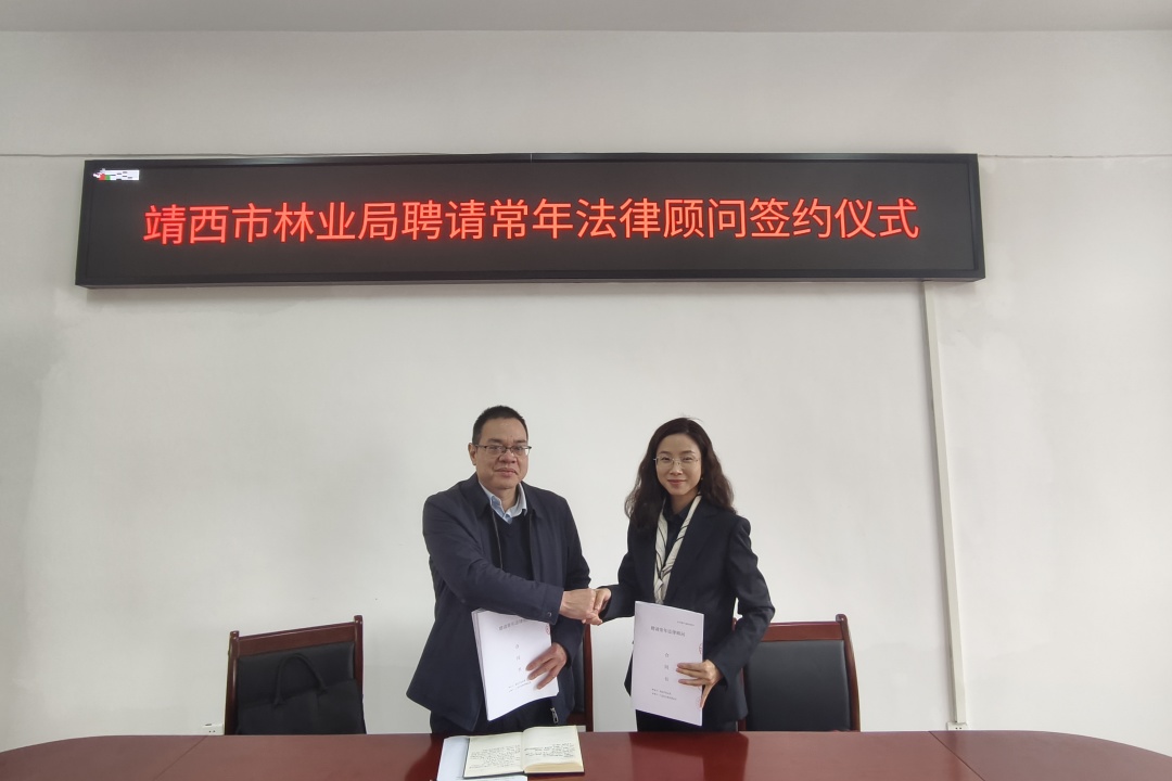 2026年2月4日上午,本所二级计点合伙人朱施蓓律师代表本所与靖西市林业局签订常年法律顾问合同。靖西市林业局局长赵继科出席签约仪式。