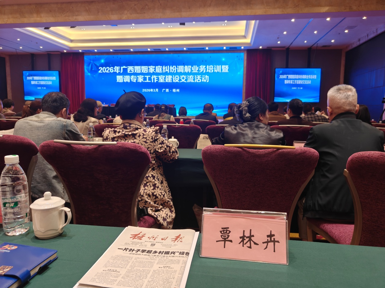 2026年3月18日至20日,2026年广西婚姻家庭纠纷调解业务培训暨婚调专家工作室建设交流活动在梧州举行。本所四级计点合伙人覃林卉律师作为新聘任的广西婚姻家庭纠纷调解专家库专家,全程参与本次活动。