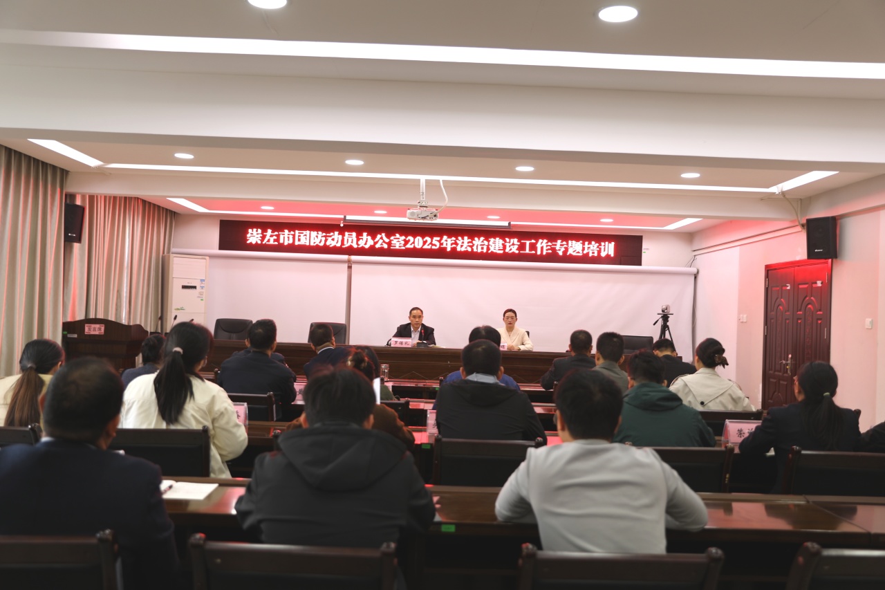 2025年12月9日下午15:30-16:30,本所二级合伙人牛利娟受邀前往崇左市国防动员办公室开展2025年法治建设工作专题培训。市国防动员办公室党组书记、主任,市发改委副主任(兼)罗传礼同志主持会议并讲话。